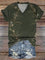 Simple Floral Art Print Casual V-Neck T-Shirt