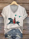 Western Style Print Women's V-neck Casual T-ShirtWestern Style Print Women's V-neck Casual T-Shirt