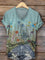 Women's Retro Flower Print V-neck Casual T-Shirt