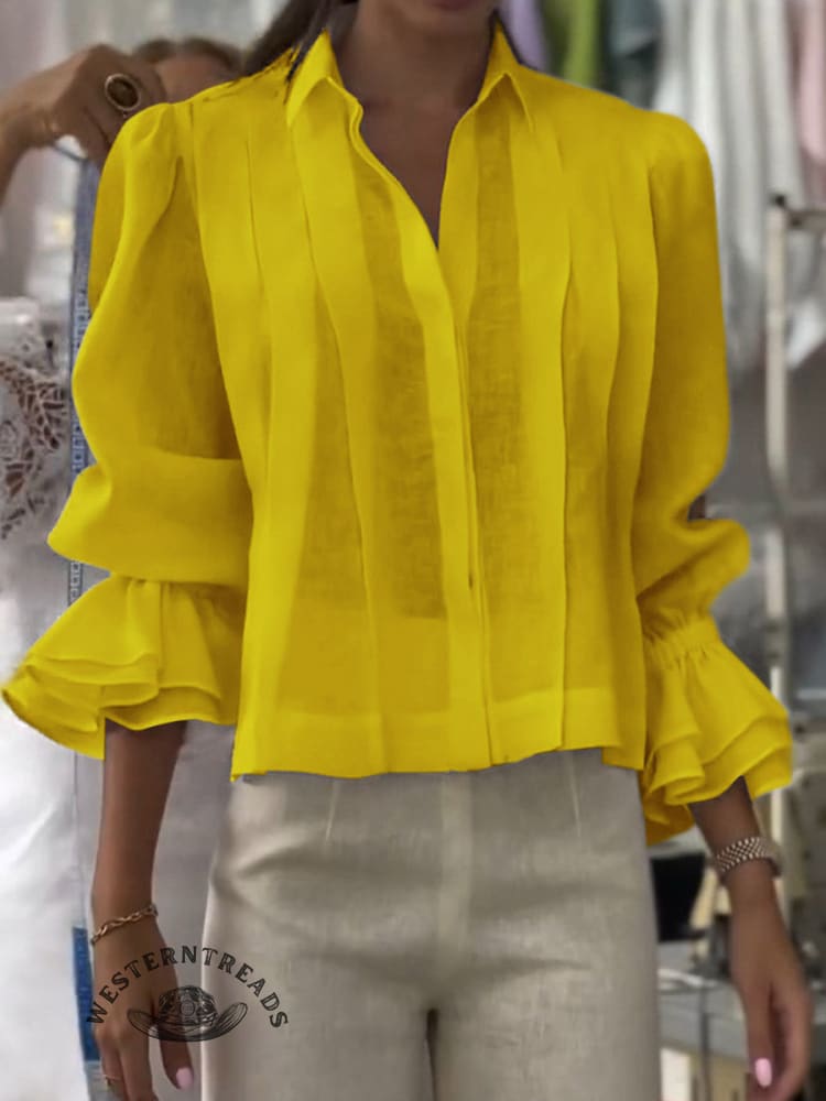 Women's Solid Color Western Horseback Riding Lapel Long Sleeve Casual Loose Linen Cardigan Top