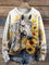 White Horse and Sunflower Print Knit Pullover Sweater