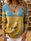 Women's Colorblock Retro Horse Casual V-neck Pullover Knit
