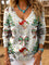 Women's Santa Claus Bow and Christmas Tree Casual V-neck Pullover Knit