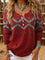 Women's Vintage Aztec Print Henley Neck Sweater Top