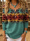 Women's Vintage Aztec Print Henley Neck Sweater Top