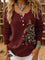 Women's Vintage Christmas Print Henley Neck Sweater Top