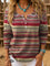 Women's Vintage Christmas Red Stripes Print Henley Neck Sweater Top