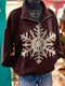 Retro Floral Texture Print Casual Half-Zip Cotton Sweatshirt