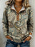Vintage Art Print Casual Half-zip Cotton Sweatshirt