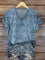 Retro Blue Pattern Printed Casual V-Neck T-Shirt