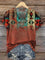 Women's Retro Ethnic Print Casual V-neck T-shirt