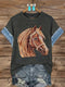 100% Cotton🍃Women's Simple Ethnic Pattern Print Casual V-neck Long Sleeve T-shirt