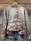 Retro Rose Christmas Tree Print Casual Cotton Sweatshirt