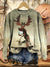 Vintage Elk Print Casual Cotton Sweatshirt