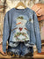 Vintage Christmas Art Print Casual Cotton Sweatshirt