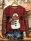 Vintage Christmas Snowman Print Casual Cotton Sweatshirt