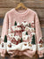 Women's Christmas House Snow Scene Art Print Cozy Plush Sweater