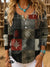Women's Christmas Tree Art Print Henley Neck Sweater Top