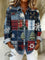 Women's Christmas Vintage Art Print Casual Cotton Shirt