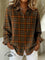 Women's Orange Checkered Print Casual Cotton Shirt
