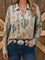 Women's Retro Western Cactus Print Buttoned Pullover Sweater