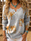 Women's Vintage Western Print Henley Neck Sweater Top