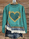Vintage Heart Art Print Casual Cotton Hooded Sweatshirt