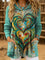 Vintage Heart Art Print Casual Knitted Pocket Hooded Tunic Top