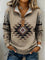 Aztec Print Casual Half-zip Cotton Sweatshirt
