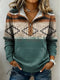 Ethnic Pattern Print Casual Half-zip Cotton Sweatshirt