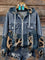 Art Print Patchwork Denim Zip-up Hoodie