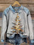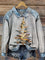 Christmas Art Print Casual Denim Patchwork Sweatshirt