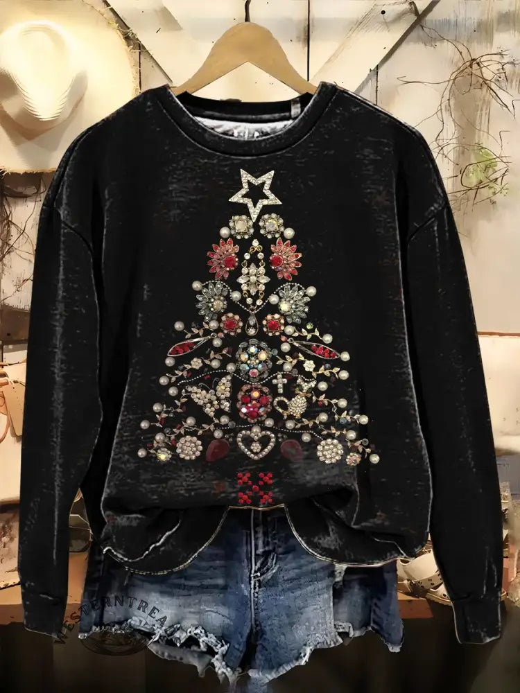 Christmas Tree Art Print Casual Cotton Sweatshirt