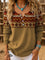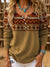 Retro Aztec Art Print Buttoned Open Collar Pullover Sweater