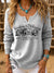 Retro Farm Art Print Buttoned Open Collar Pullover Sweater