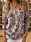 Retro Floral Art Print Buttoned Open Collar Pullover Sweater