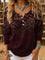 Retro Floral Art Print Buttoned Open Collar Pullover Sweater