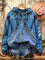 Retro Print Casual Cotton Patchwork Hooded Zip-up Sweatshirt