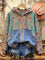 Retro Print Casual Cotton Patchwork Hooded Zip-up Sweatshirt