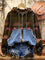 Retro Print Casual Cotton Patchwork Hooded Zip-up Sweatshirt