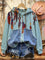 Retro Print Casual Cotton Patchwork Hooded Zip-up Sweatshirt