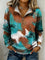 Retro Turquoise Texture Print Casual Half-zip Cotton Sweatshirt