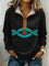 Turquoise Aztec Pattern Print Casual Half-zip Cotton Sweatshirt