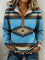 Women's Blue Aztec Print Casual Color-blocked Casual Half-zip Cotton Sweatshirt