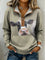 Women's Funny Cow Print Casual Color-blocked Casual Half-zip Cotton Sweatshirt