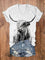 Women's Highland Cow Print V-Neck Casual T-Shirt