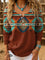 Women's Retro Aztec Art Print Henley Neck Sweater Top