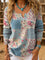 Women's Vintage Floral Print Henley Neck Sweater Top