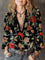 Women's Vintage Floral Velvet Long-Sleeved Blouse