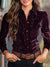 Women's Vintage Flowers Print Lantern Sleeve Velvet Top